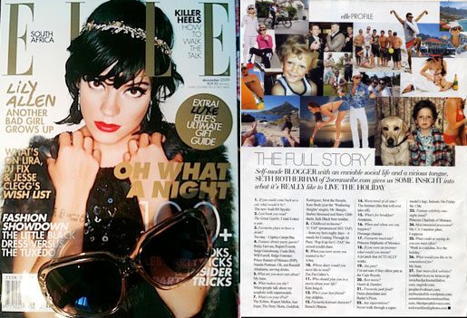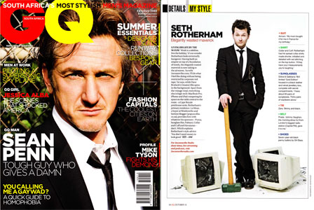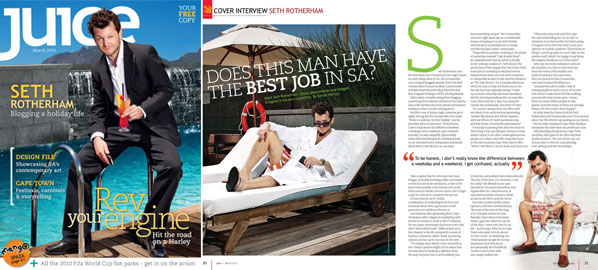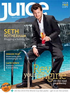 Magazines / Newspapers Seth has also featured on the cover and in the pages of most of South Africa's mainstream magazines and newspapers. Titles include Sunday Times, Cape Times, The Times, Marie Claire, ELLE, GQ, Huisgenoot, YOU, Wine, Diner's Club Signature, Leadership, Mango Airlines in-flight, Kulula Airlines in-flight. Scroll down: Read 6-page Playboy interview HERE |